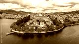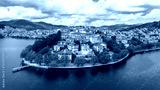 Aerial view of the city of Kastoria and Lake Orestiada in north Greece.