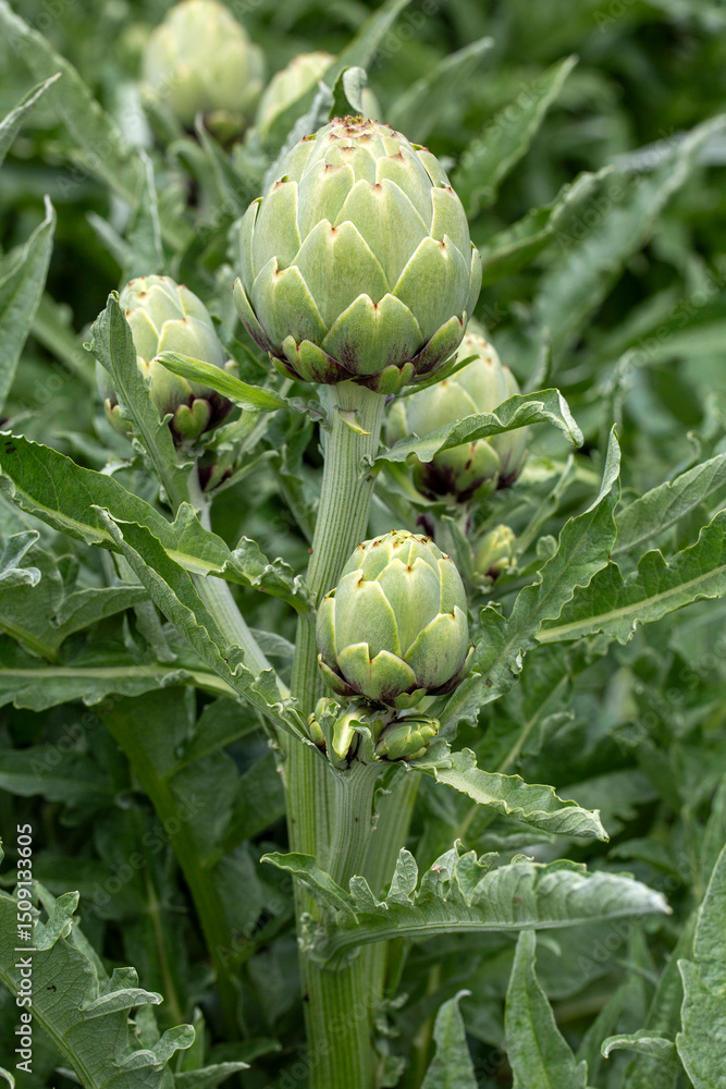 Fresh, organic artichoke field. Agriculture concept photo. (Izmir - Turkey)
