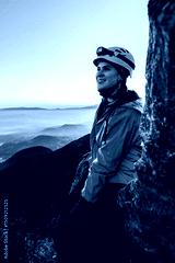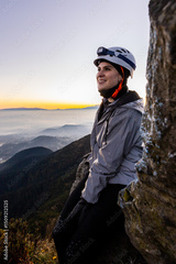 Mountain Climber Enjoying Sunrise View from a Cliff