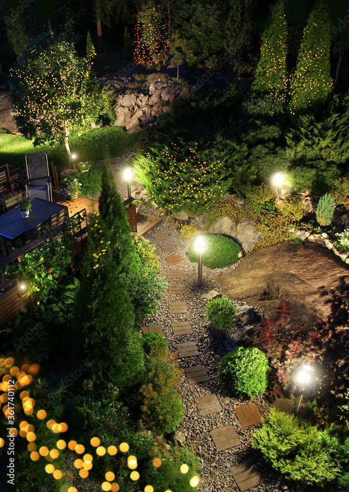 Cool summer food table scene. Variety of ice cream bowls, popsicles and frozen treats. Top view on a dark wood background.
