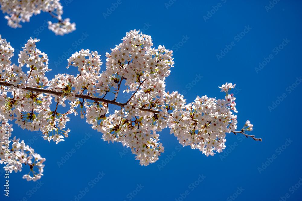 Close-up of white blossom tree flowers from a pear tree in spring. White blossom trees, nature springtime. Abstract spring seasonal background with white flowers. Easter background with copy space.