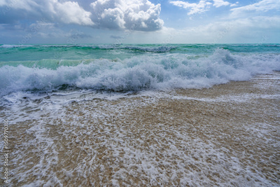 Sea waves background. Summer tourism. Ocean water motion. Ocean splash wave background. Deep blue sea beach. Turquoise wave. Dreamy exotic sea beach. Beautiful sea beach waves.