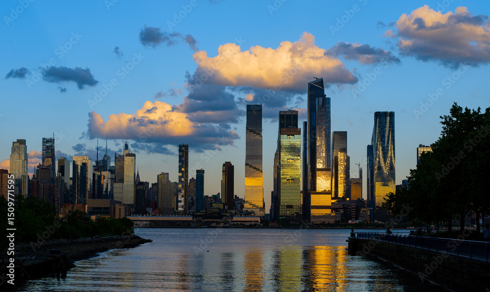 Manhattan skyline, New York, United States. Panorama view of New York city skyscrapers in Manhattan. USA NYC. American big city. Lower NYC skyline. New York cityscape. America, New York City.