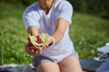 Mother Offering Fresh Taco During a Family Picnic on a Sunny Summer Day