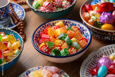 Traditional Turkish Ramadan Sweet Sugar Candy, Chocolate candie and Almond candies