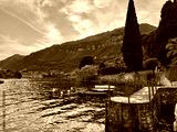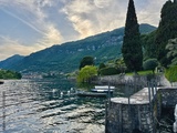 Peaceful lakeside promenade in Lenno and Ossuccio, with neatly trimmed trees, waterfront benches, mountain views, colorful villages and scenic perspectives over Lake Como