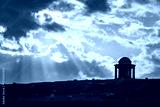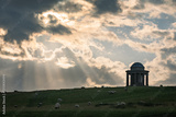 Sunset behind Brightling temple on the high weald east Sussex south east England UK