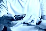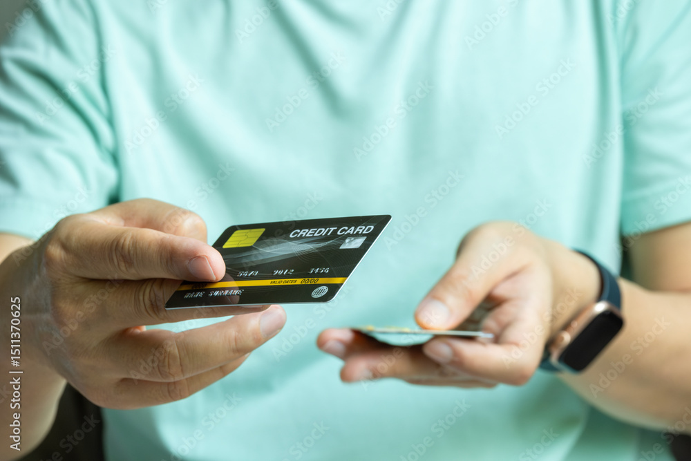 Woman holding credit cards and he is choosing a credit card to pay and spend Payment for goods via credit card. Finance and banking concept