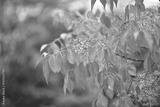 A close-up of Korean intermediate spindle tree (Euonymus oxyphyllus var. intermedius) showing soft green leaves and delicate flower buds in natural forest environment.