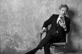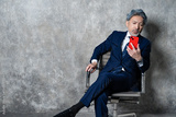 携帯を見るスーツを着た男性
