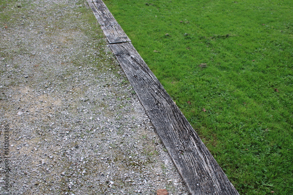 Bordure en traverse bois dans le jardin