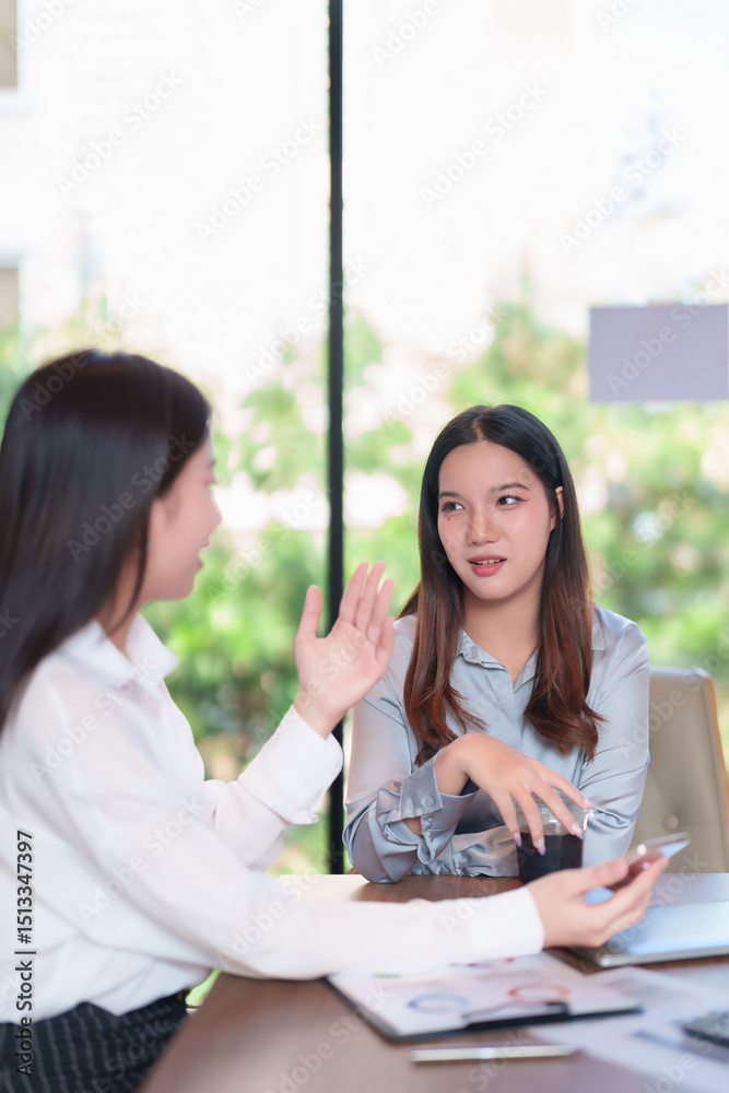 Asian Businesswomen Collaboration Brainstorming in Modern Office Discussing Ideas Young Professional Women Meeting Teamwork Strategy and Planning Solution