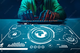 Futuristic Data Analysis Interface with Digital Earth and Interactive Features for Technology and Cybersecurity Concepts in Modern Workspace