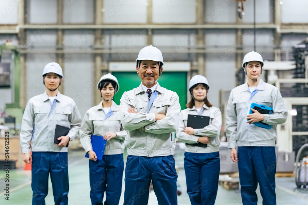 工場、作業員、チームワーク、経営者、上司、リーダーシップ、製造業、エンジニア、中小企業、社長、人材、求人、採用、産業、工業、モノづくり、メーカー、メカニック、仕事、働く、作業服、従業員、スタッフ、労働者、職場、現場、女性、日本人、男性、整備、物流、点検、オペレーター、安全、メンテナンス、検査、保守、管理職、ヘルメット、仲間、同僚、部下、生産、機械、労務、ミドルエイジ、中高年、建設、工事、人物