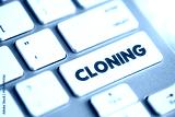 Cloning is the process of producing individual organisms with identical genomes, text concept button on keyboard