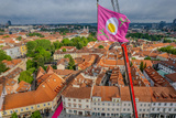 Aerial summer beautiful morning view in Vilnius old town, Vilnius Pink Soup Fest, Lithuania