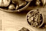 Bawang Goreng or Fried red onions in a wooden bowl. Crispy onion fries or shallots are fried to a golden brown color. Crispy fried onions.