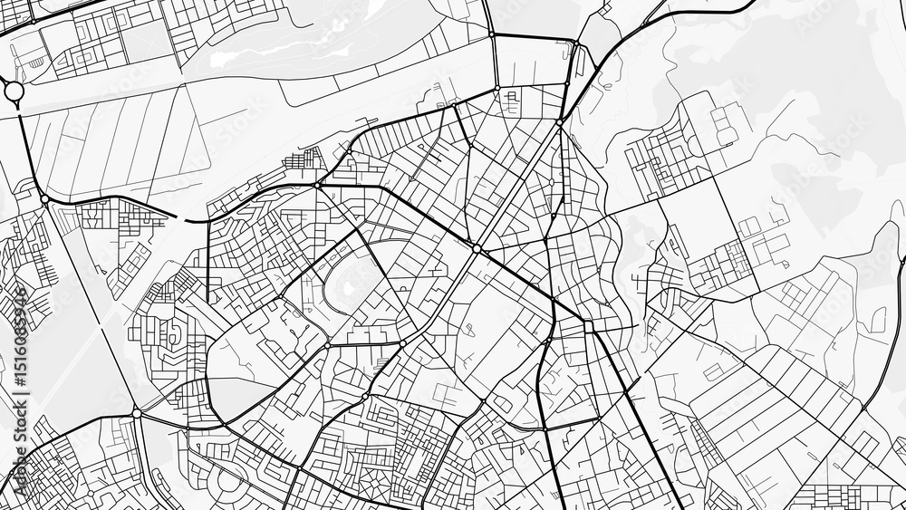 Fez City Map. Minimalist black and white line art poster for printing, wallpaper, wall art for home and office decor