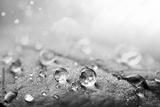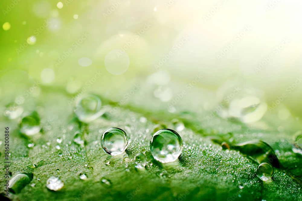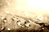 Many drops of water on a leaf in nature after rain, natural background, macro.