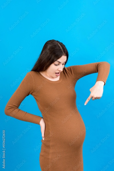 Young surprise or shocked woman pregnant isolated colored background. expression female