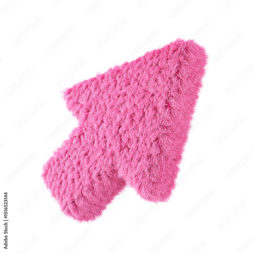 Arrow shape with pink fur, isolated on white background. 3d rendering.