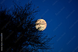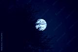 Full Moon, stars, planets and landscape scenery silhouettes.