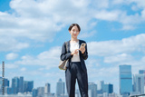 ビジネス 女性 スマホ 青空