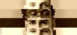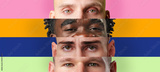 Diverse group of individuals expressing unity through artful facial collage in bright colors