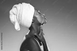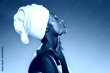 Relaxing skin treatment session featuring a woman applying a golden face mask in a serene setting