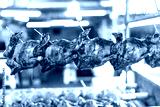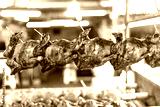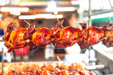 Appetizing toasted chicken in charcoal grills. Selective focus