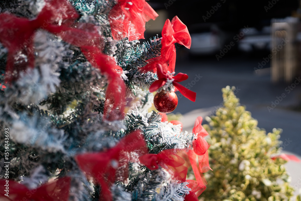 Beautiful Christmas tree at outdoor. Christmas festival.