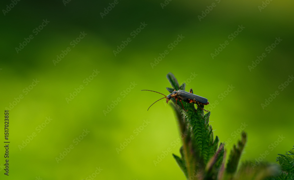 Natural green background, insect on a leaf close-up.