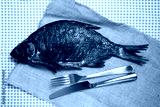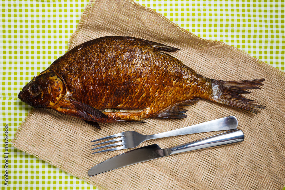 Smoked fish on the table. Top view