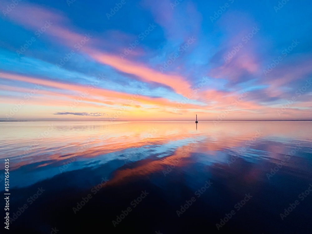 fantastic colors of the sky after the sunset, reflection on the sea surface, fantastic purple sea reflection, twilights sea horizon