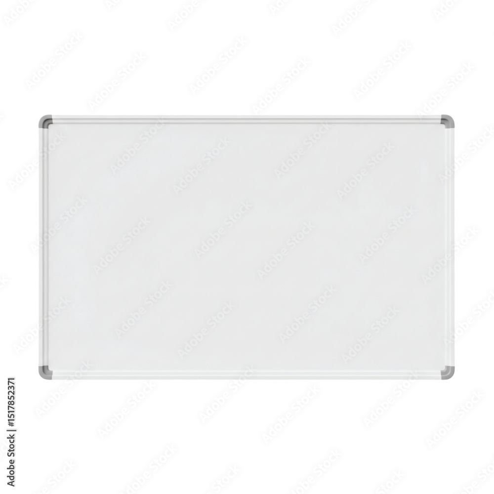 Magnetic whiteboard with metal corners, isolated on transparent background