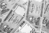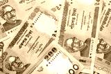 Bangladeshi taka money bills in big amount lies on white color table close up