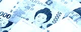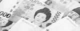 South Korean won money bills in big amount lies on white color table close up