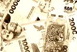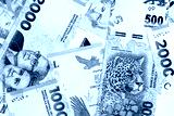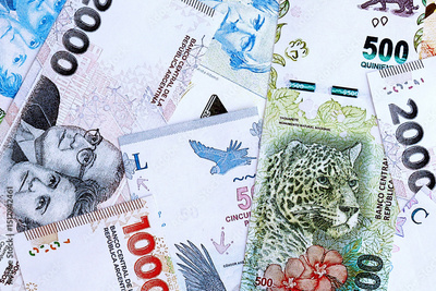Argentine pesos money bills in big amount lies on white table close up. Finance and banking concept