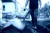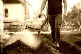 Farmer spraying fertilizer. Pest control and plant diseases to obtain a large harvest