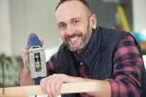 portrait of smiling professional worker in workshop