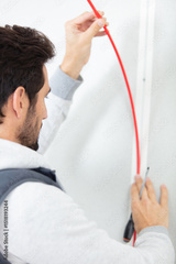 young adult electrician builder wiring