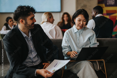 A group of people collaborating during a productive business meeting in a modern co working environment, showcasing teamwork, productivity, and meaningful dialogue among diverse team members.