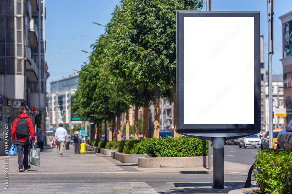 Vertical Blank billboard or signboard with copy space for content or text in the city street. Sunny day. Business mockup