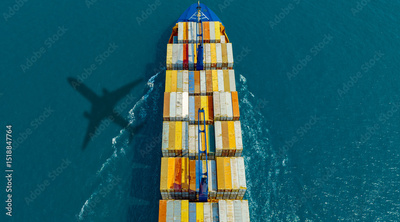 Aerial view of the freight shipping transport system cargo ship container. international transportation Export-import business, logistics, transportation industry concepts