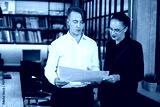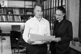 businessman and businesswoman holding paper document and talking about work or project in the office