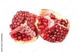 Fresh ripe pomegranate segments with juicy red seeds isolated on transparent background