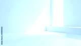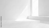 Minimalist White Room with Sunlight and Geometric Platforms Ideal for Product Display or Background.