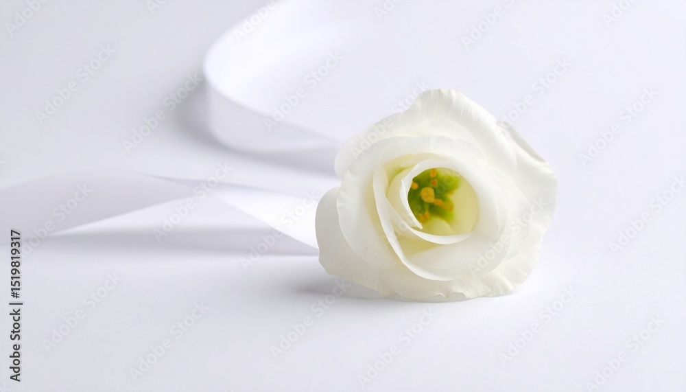 Elegant White Lisianthus Flower with Ribbon Pure Minimalist Floral Design.