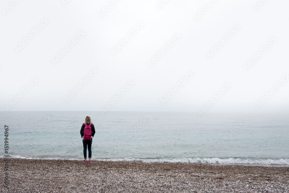 Alone girl stay near sea