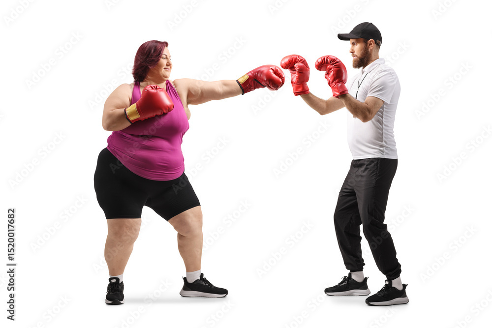 Corpulent woman training box with a coach